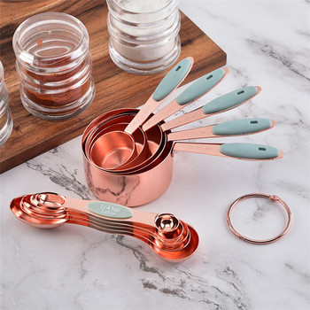 玫瑰金不锈钢量杯和磁性双面量匙10件套软硅胶手柄